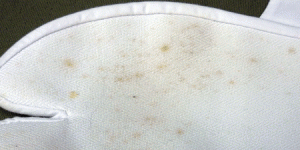 今回も黄変のシミです。このシミの一つの原因には付いた時はシミ …
