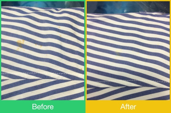 紺のストライプのあるシヤツなのですが、黄ばんだシミが取れないとのことで
