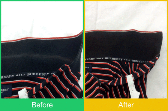 スポーツシャツなどは特に襟のあたりに汗を良くかきますので濃い色の襟などは汗により変色することがよくあります。
