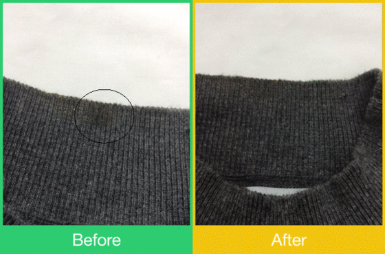美容室でヘアーカラーが襟についたとのことでお持ちいただきました。