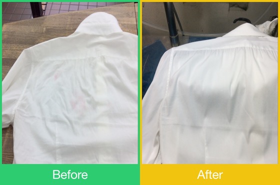 シャツの背中に口紅らしきシミが付いたのでしみ抜きのご依頼です。