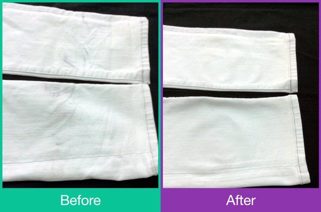 今回のしみ抜きはスエードのブーツの中にズボンを入れて履かれていたら、ズボンに革の色が付いたとのことでお持ちいただきました。