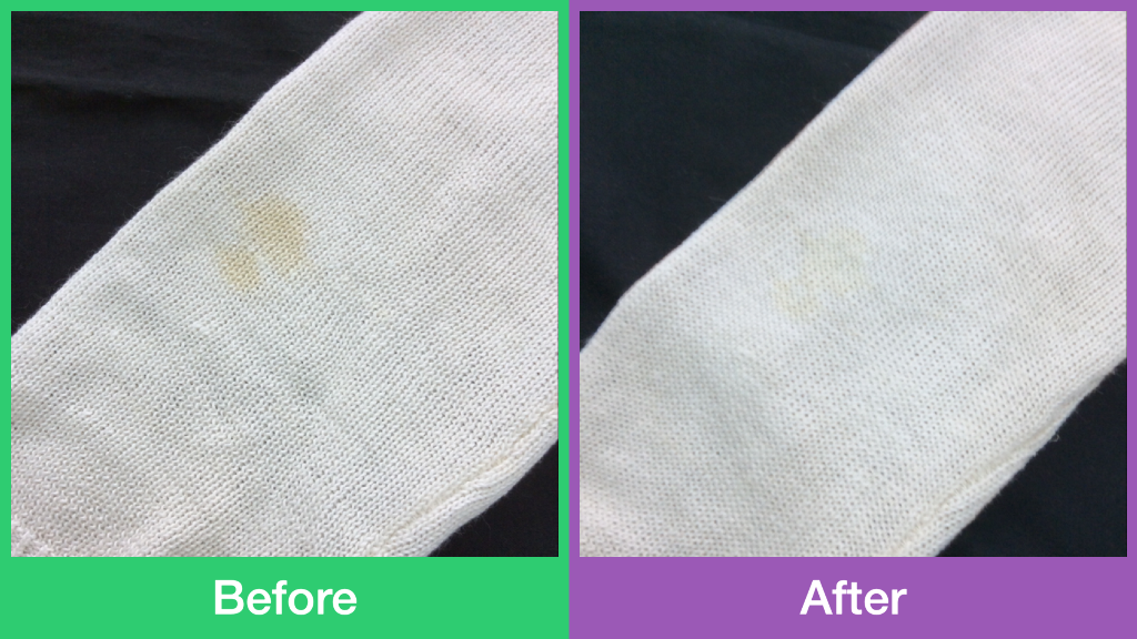セーターを購入されたのですが、袖の所に最初からシミがあったとのことでしみ抜きにお持ちいただきました。