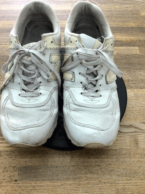 今回は、白の革と白のエナメルを使ったスニーカーのクリーニングをお預かりです。