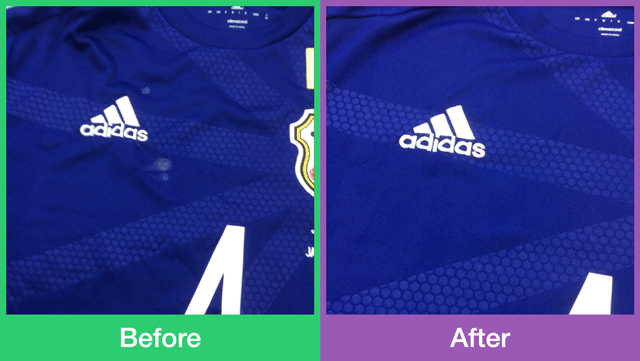 日本とコロンビアの対戦と書かれた日本のユニホームにシミがついたとのことでお持ちいただきました。