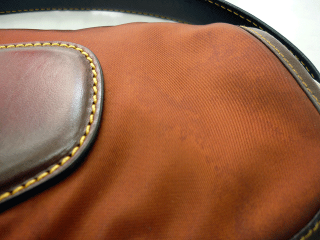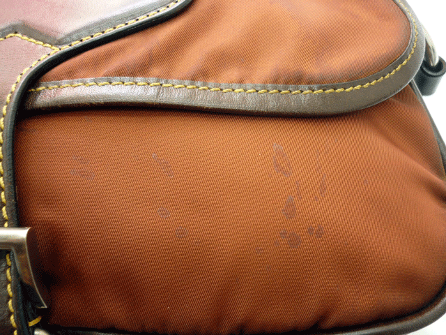 ナイロン生地に部分的に革を使用したプラダのバッグのクリーニングのご依頼です。