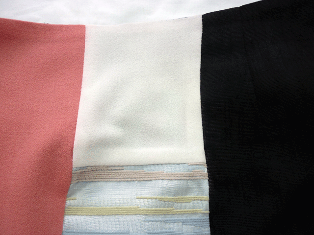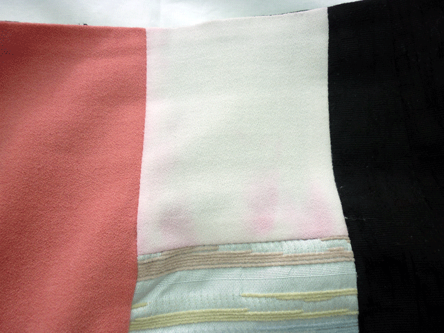 白の生地と色柄の生地の境目ですので強いしみ抜きをしますと色柄の生地まで色が抜ける可能性がありますので、無理をしない程度にしみ抜きしてゆきました。