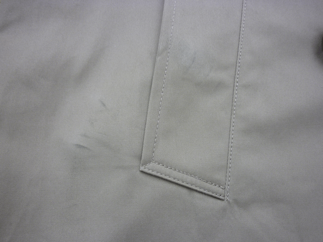 コートのポケットのあたりにバッグがすれて黒くシミになったとのことでお持ちいただきました。