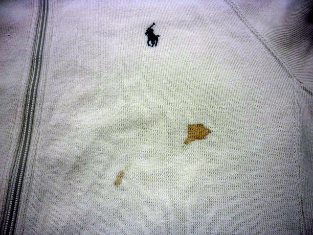 ニットのジャケットに褐色のシミ。