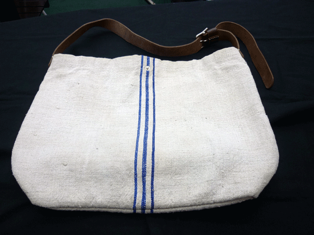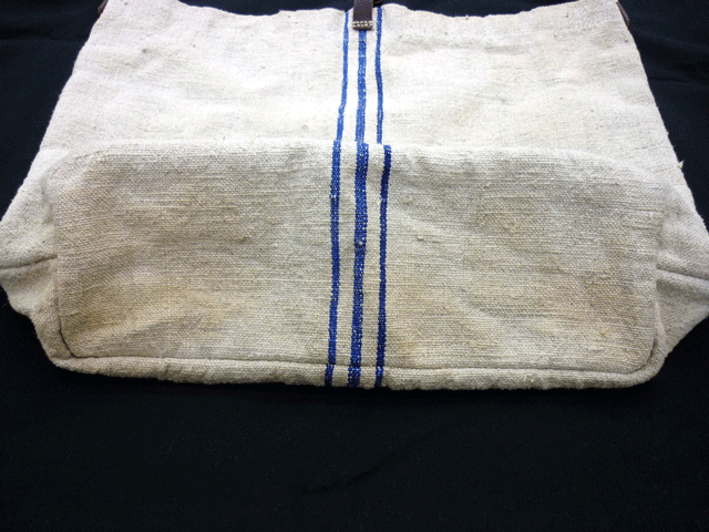 革付きキャンバス生地バッグにお茶のシミ。