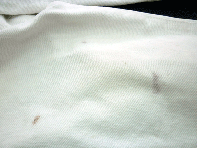白綿ズボンにワインのシミ。