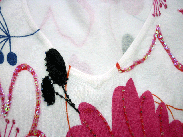 ニットブラウスのVネックにシミ。
