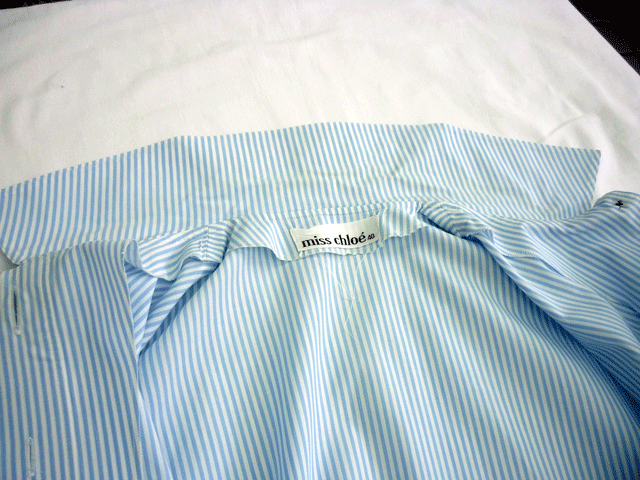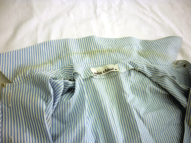 お気に入りの綿ブラウスを出して見たらエリや袖口脇など汗による黄ばみがでているとのことでお持ちいただきました。