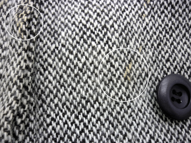 織り柄のある生地の場合強くしみ抜きしますと、シミと同時に柄の色まで色あせることがありますのであまり強くしみ抜きができないことがあります。
