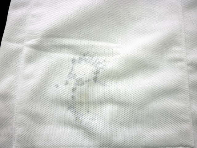 インクの塊で付いたときは変にさわりますと広がり処置にこまりますのでさわらずお近くのクリーニング店にお持ちいただくほうが賢明です。