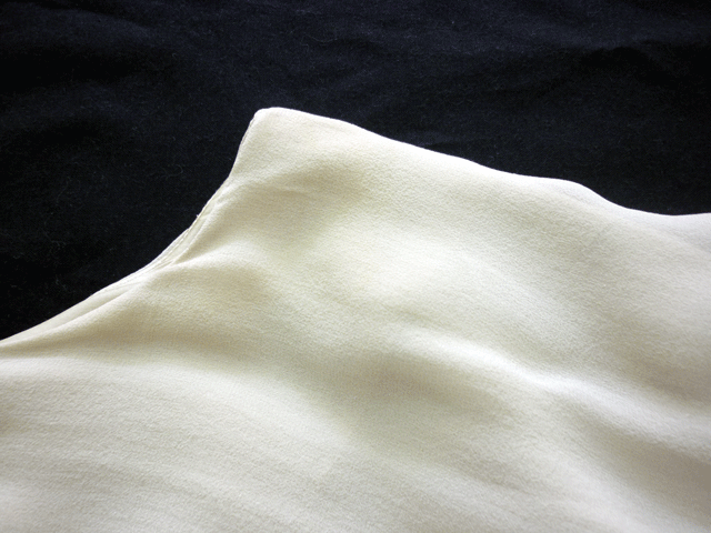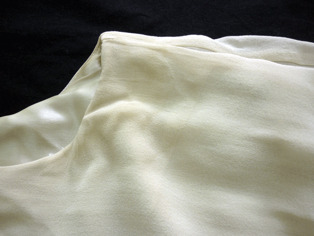 シルクドレスの脇に汗の黄ばみ。