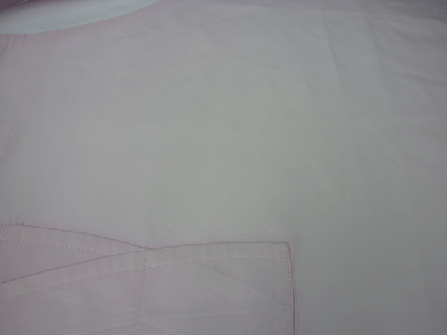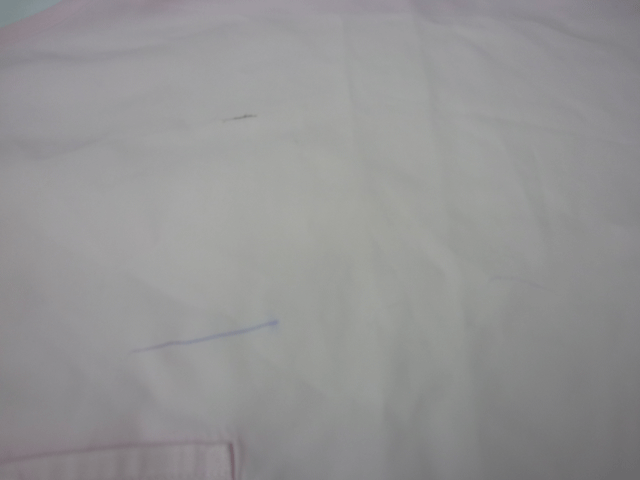今回もポケットの中はインクが結構ついていましたが、前の所に線状にボールペンのシミが付いたとのことでしみ抜きのご依頼です。