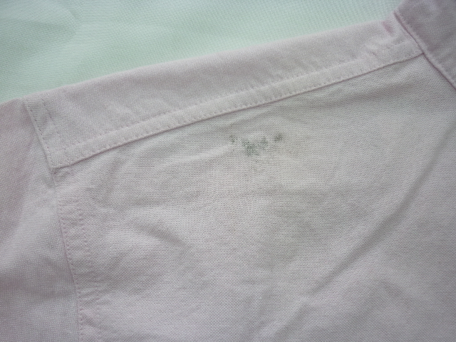 家庭洗濯されたようなシャツの肩の所に黒っぽいシミがありしみ抜きのご依頼です。