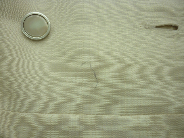 ベージュの婦人上着なのですが前の所にボールペンがすれてスジのようにシミになったのでしみ抜きのご依頼です。