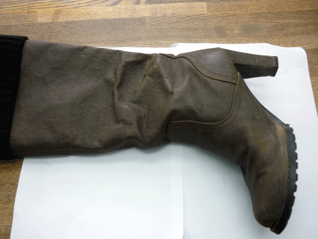 急に雨が降ったのでしょうか革のブーツにドロハネが全体についています。