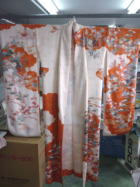 着物はデリケートな物が多く金箔や刺繍や紋などいろいろと取り扱いを注意しなければなりません。