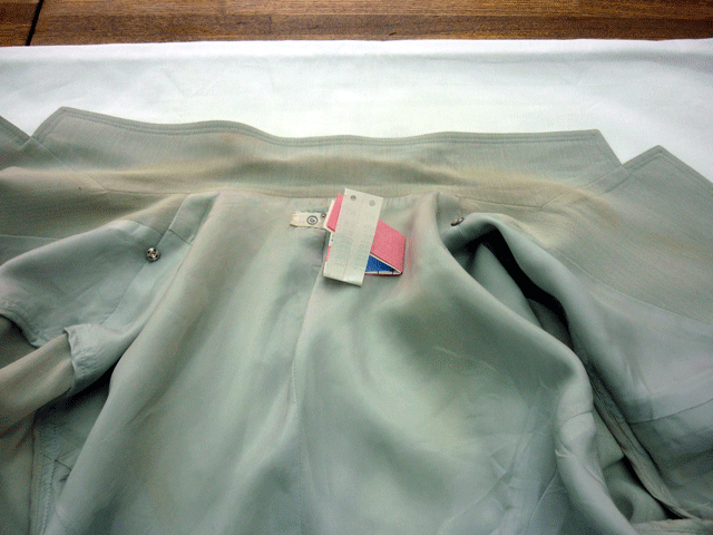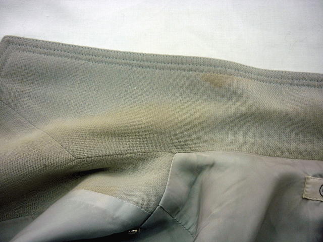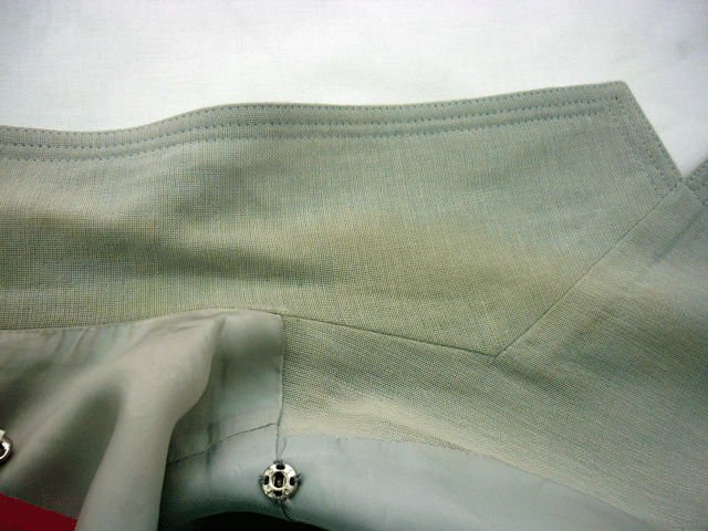 サマーウールの婦人上着エリの黄ばみ。