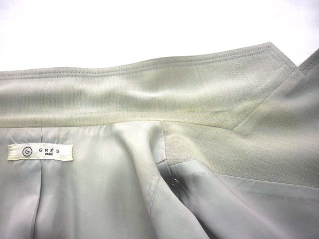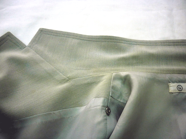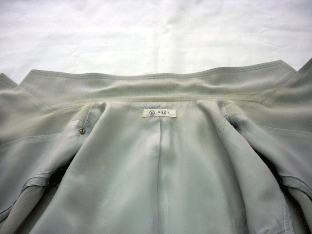 薄グレーでサマーウールの生地なのですがエリの所がかなり広範囲に黄ばんでいます。