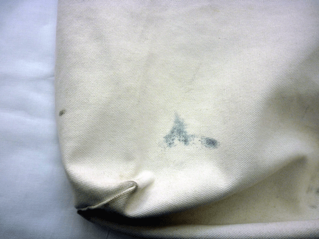 キャンバス地のバツグにインクのシミ。