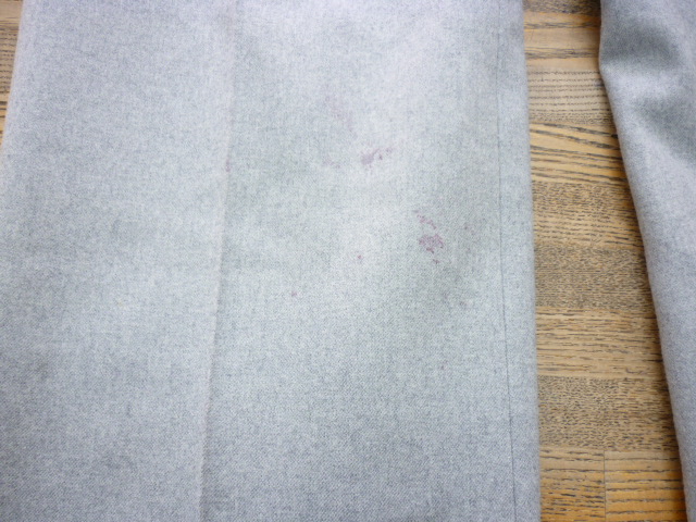 それと、生地がフラノというウールの生地でしたのでシミも生地の中まで染みこんでいないようでしみ抜きもそれほど手間がかからなかったです。