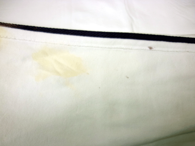 あわてて、塩素系の漂白剤をつけられたらしくシミの箇所が