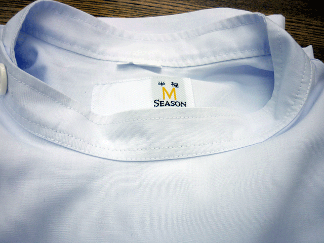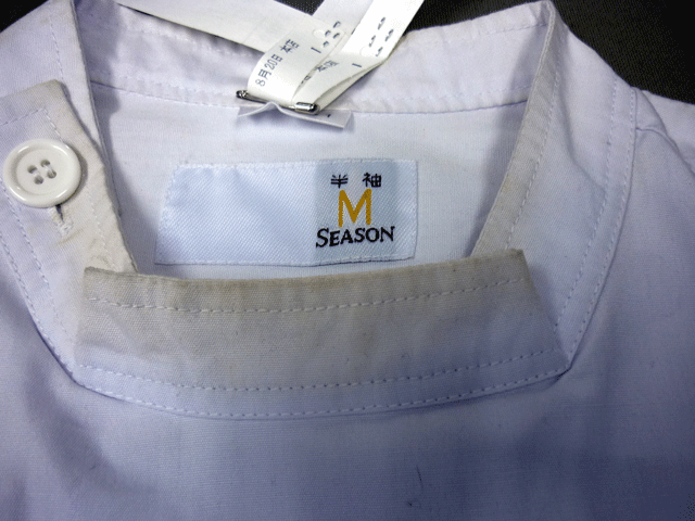 白衣のエリ周りに黄ばみ。