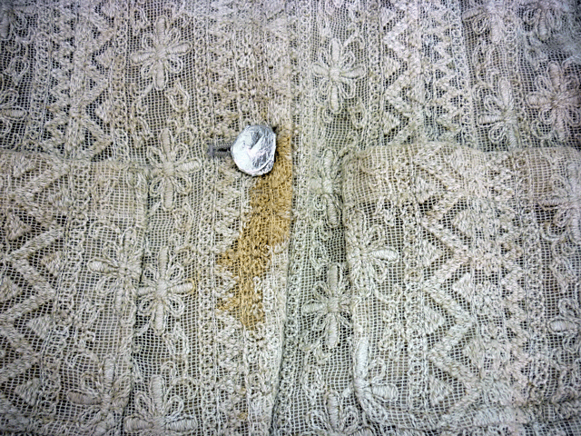 たぶん、着ようと出してきたらシミがありお持ちいただいたのでしょう。
