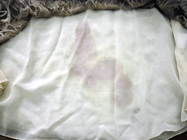 レースの刺繍のあるブラウスにワインをこぼされたようです。