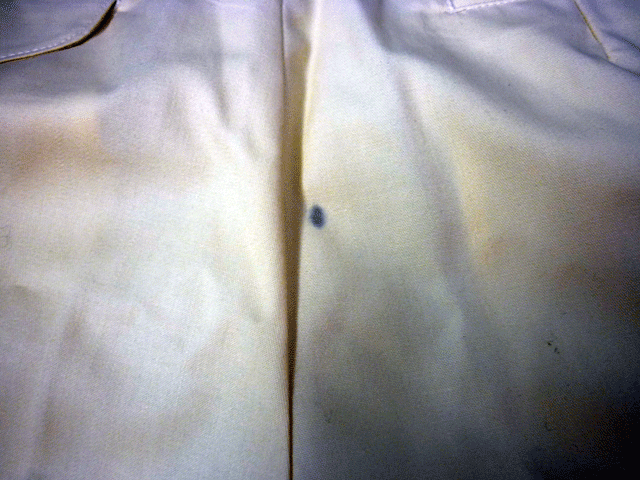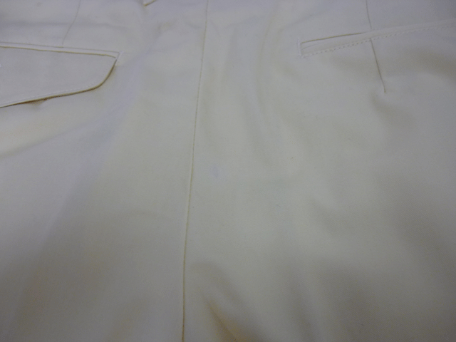 まだ着用もしていない新しい衣類ですので、あまり強くしみ抜きしまして地色が白っぽくなるのもいけませんので、出る限り薄くしてのお渡しになりました。