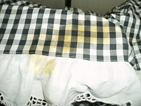エプロンについた大きなシミ。