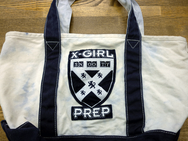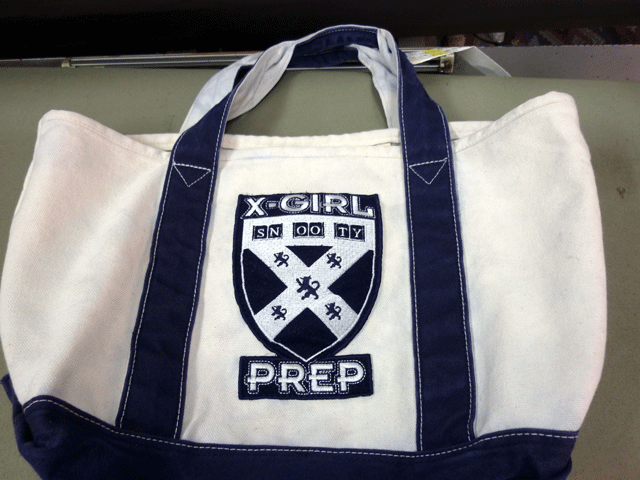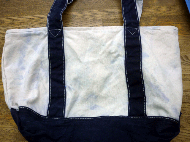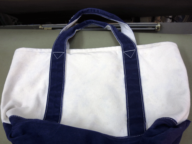 紺色の布と白の布を使用したカバンですが、かなり紺の布から