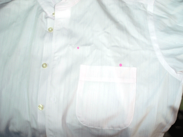 カツターシャツについた赤インクです。