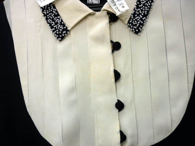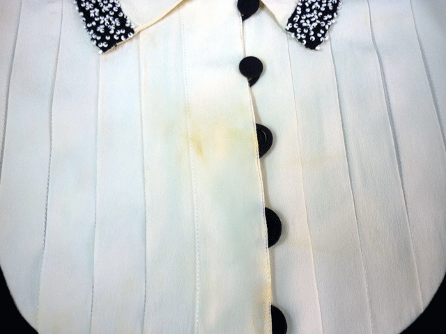 シルクのブラウスの前にある黄変のしみです。