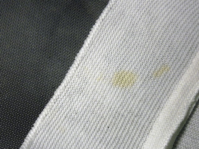 ニットのシャツについていますシミの処理なのですが、かなりシミがしみこみ、日にちがたっているようで