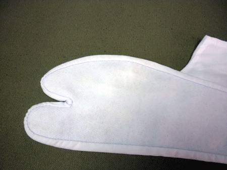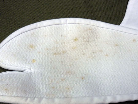 白足袋の足裏にでたカビです、たぶんはかれた後、湿気のある所におかれていたのだと思われます。