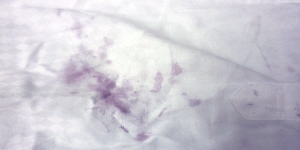 スポーツシャツにワインのシミ。 薄い紫色の …