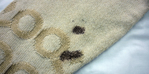 綿ズボンに血液のシミ。 お尻のあたりの血液 …