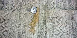 レース生地の婦人上着に黄ばんだシミ。 暑い季節に上に羽織るに …