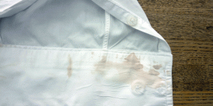 綿ブラウスのカウスに褐色のシミ。 綿ジョーゼットのブラウスな …