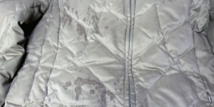 ダウンコートに血液のシミ。 お客様がけがをされたときに付いた …